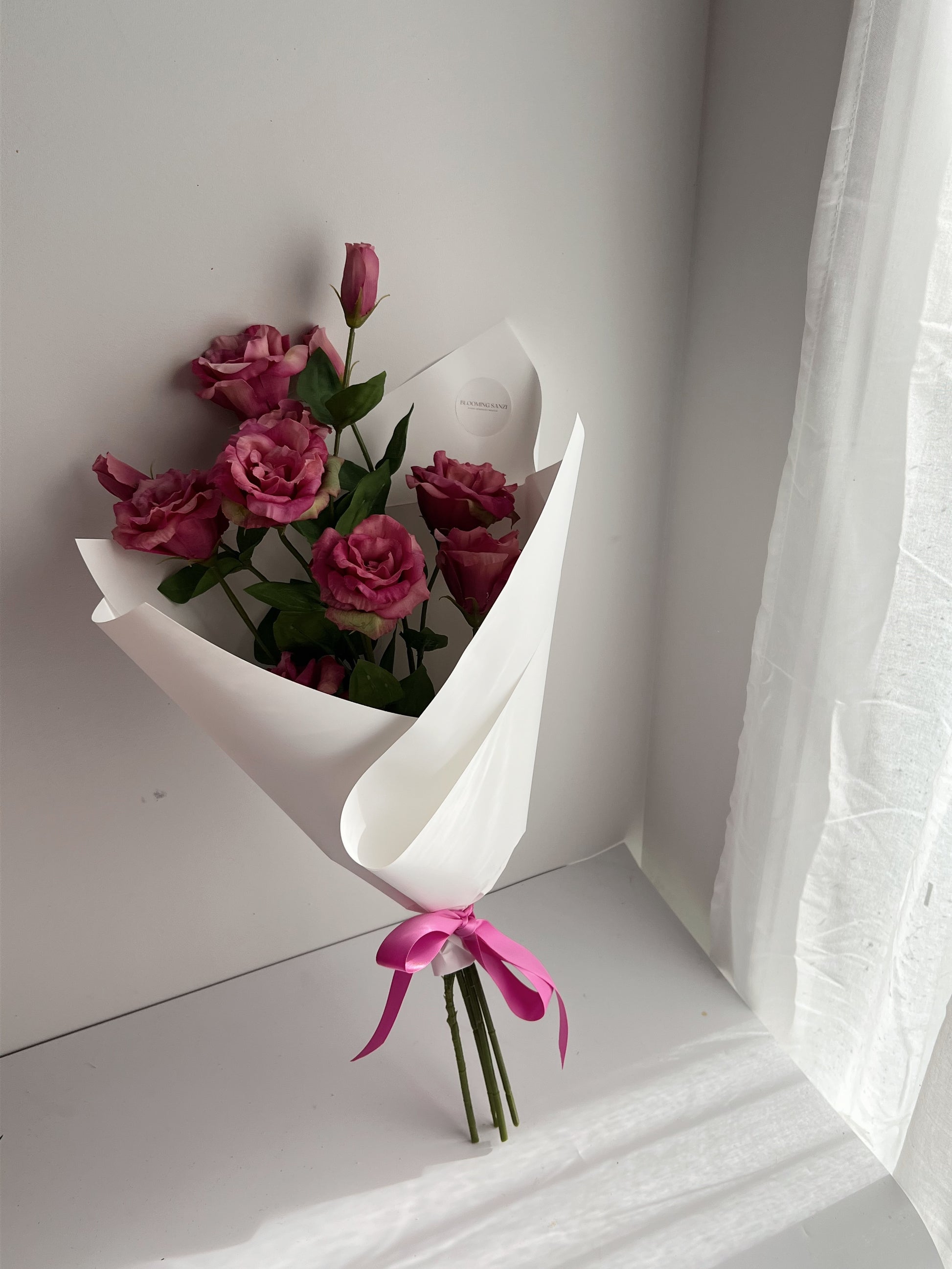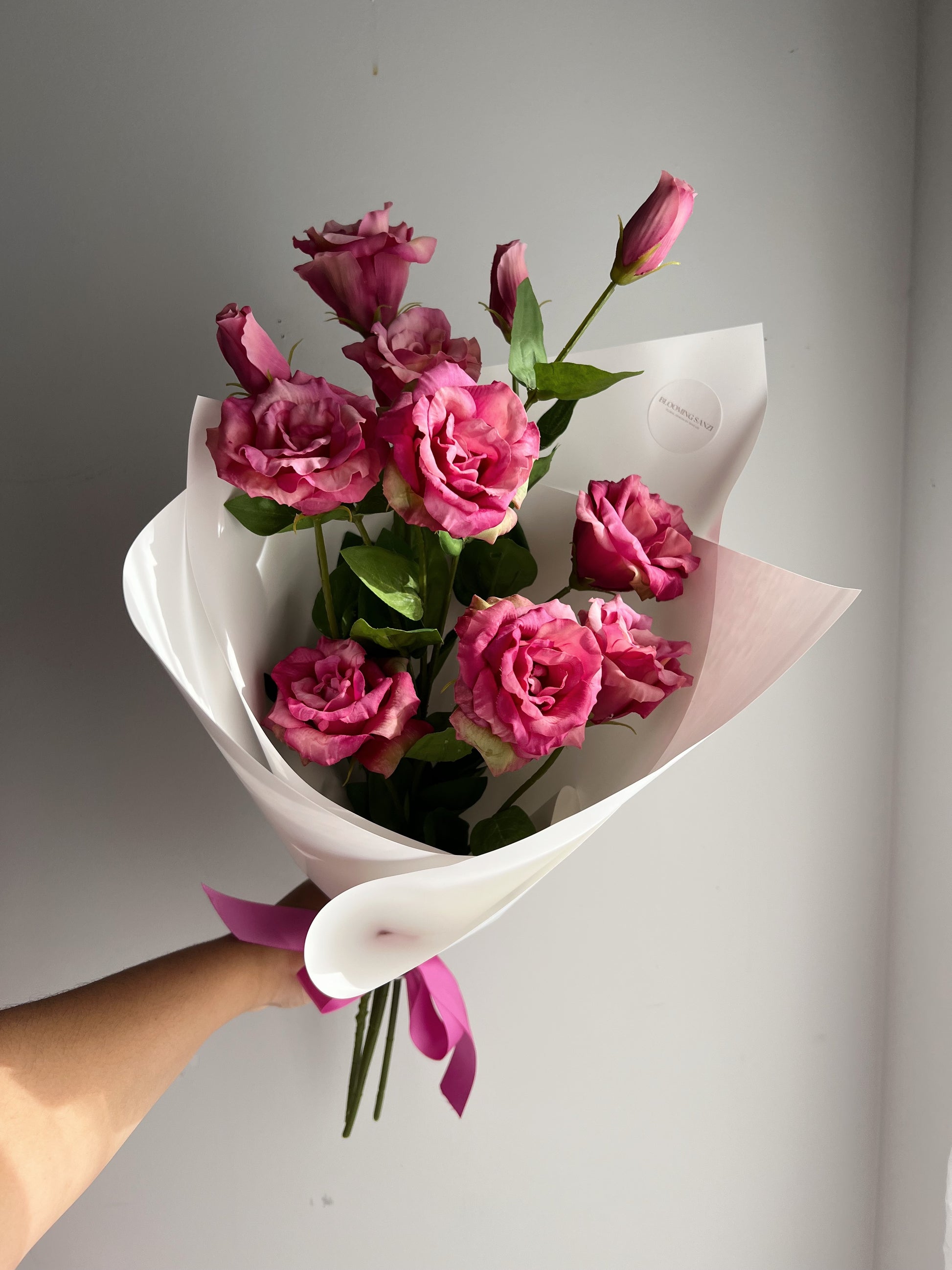 This bouquet includes 4x stems of real touch silk lisianthus.