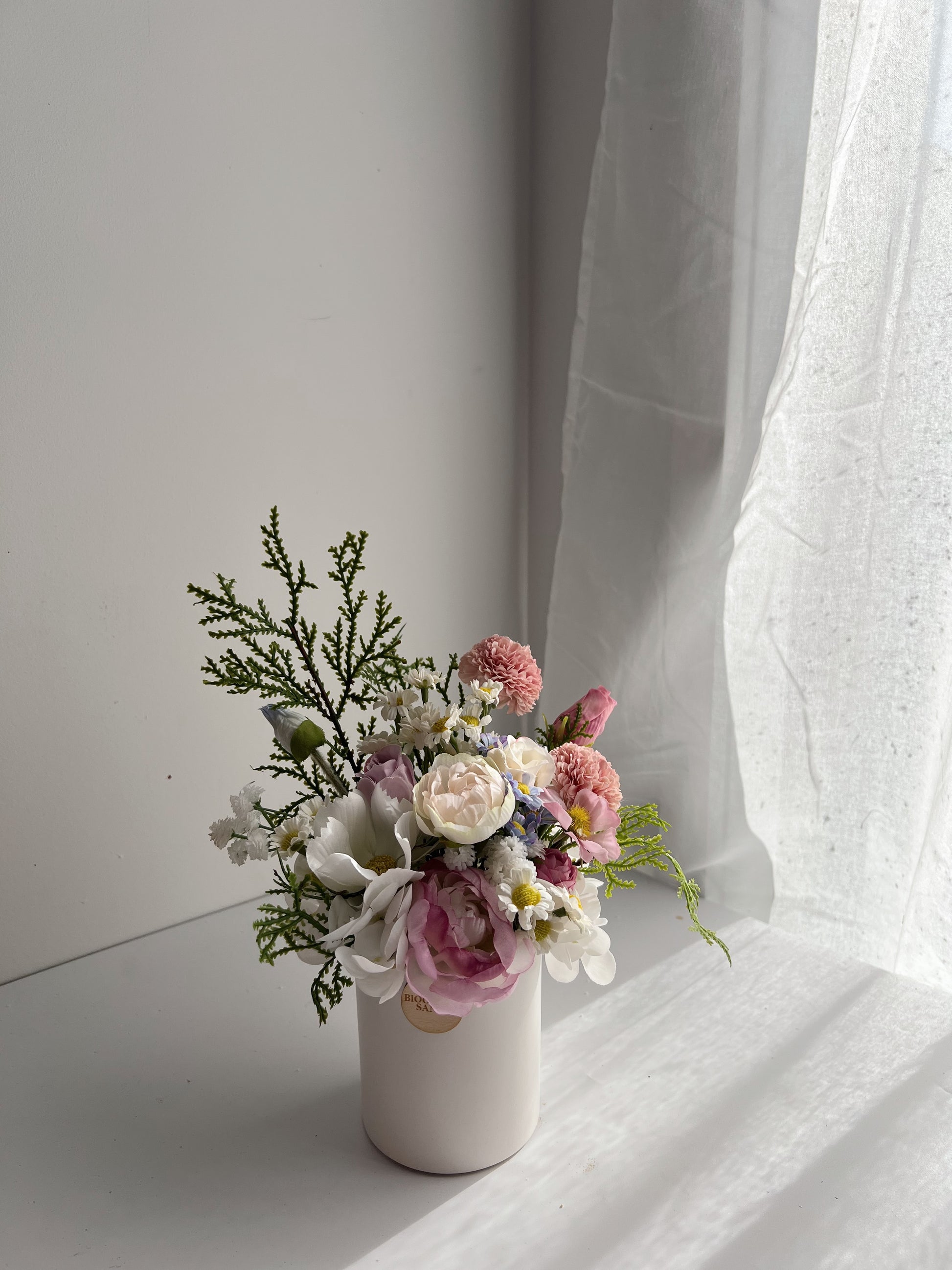 Flower Care: Artificial flowers will last for years if cared for properly, naturally over time colours can fade, we believe this adds extra beauty.If your arrangement gets dusty, try using a hair dryer on a cool, low setting mode.Please don’t store your flowers in direct sunlight as this can cause fading with colours. Following our guidelines will enhance their lifetime.