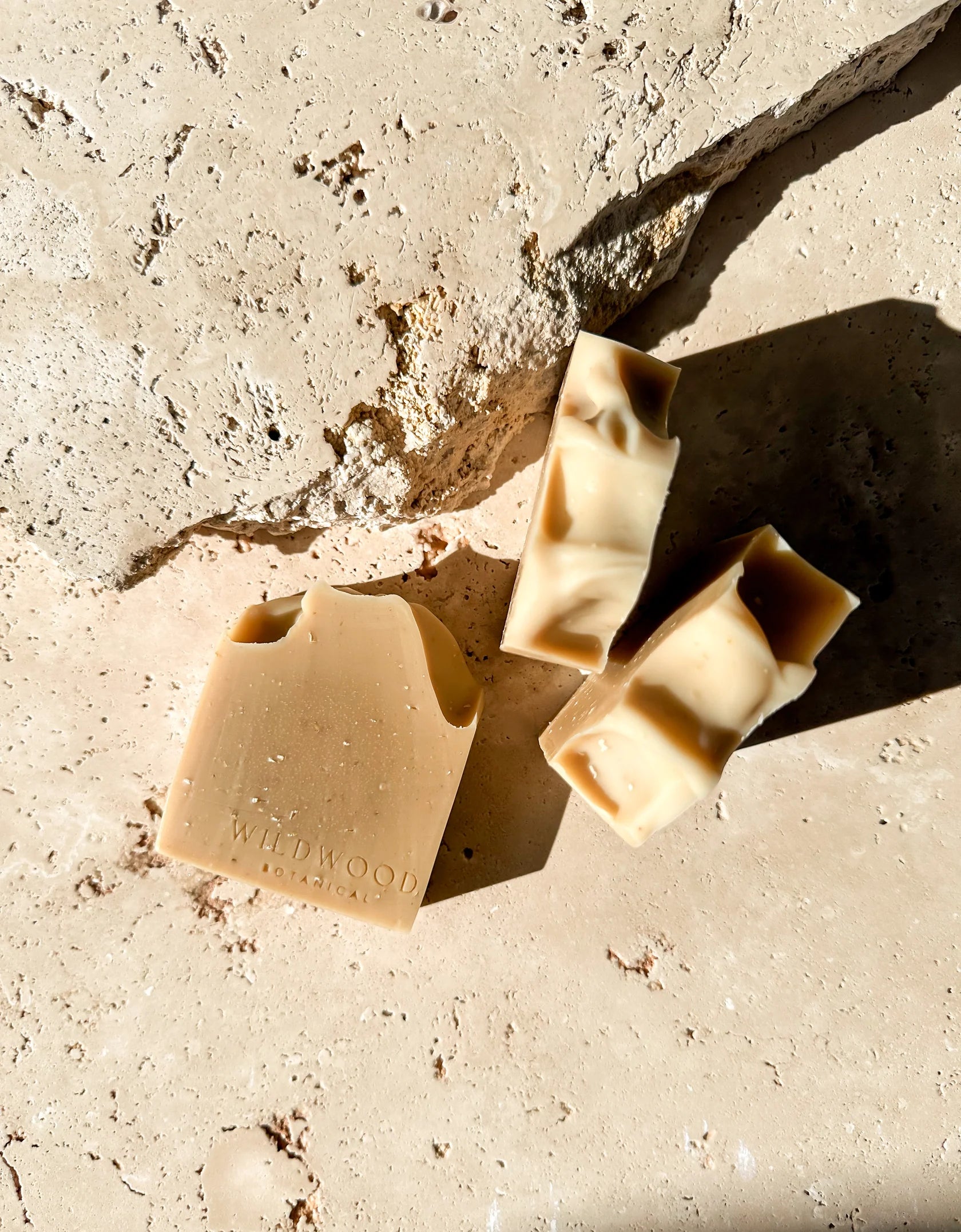 A nourishing bar that soothes and hydrates dry skin whilst naturally reuniting inflammation. Infused with Manuka honey which offers antibacterial effects and organic oatmeal and coconut milk that works to protect and hydrate irritated skin. The bar lightly scented with lavender essential oil.