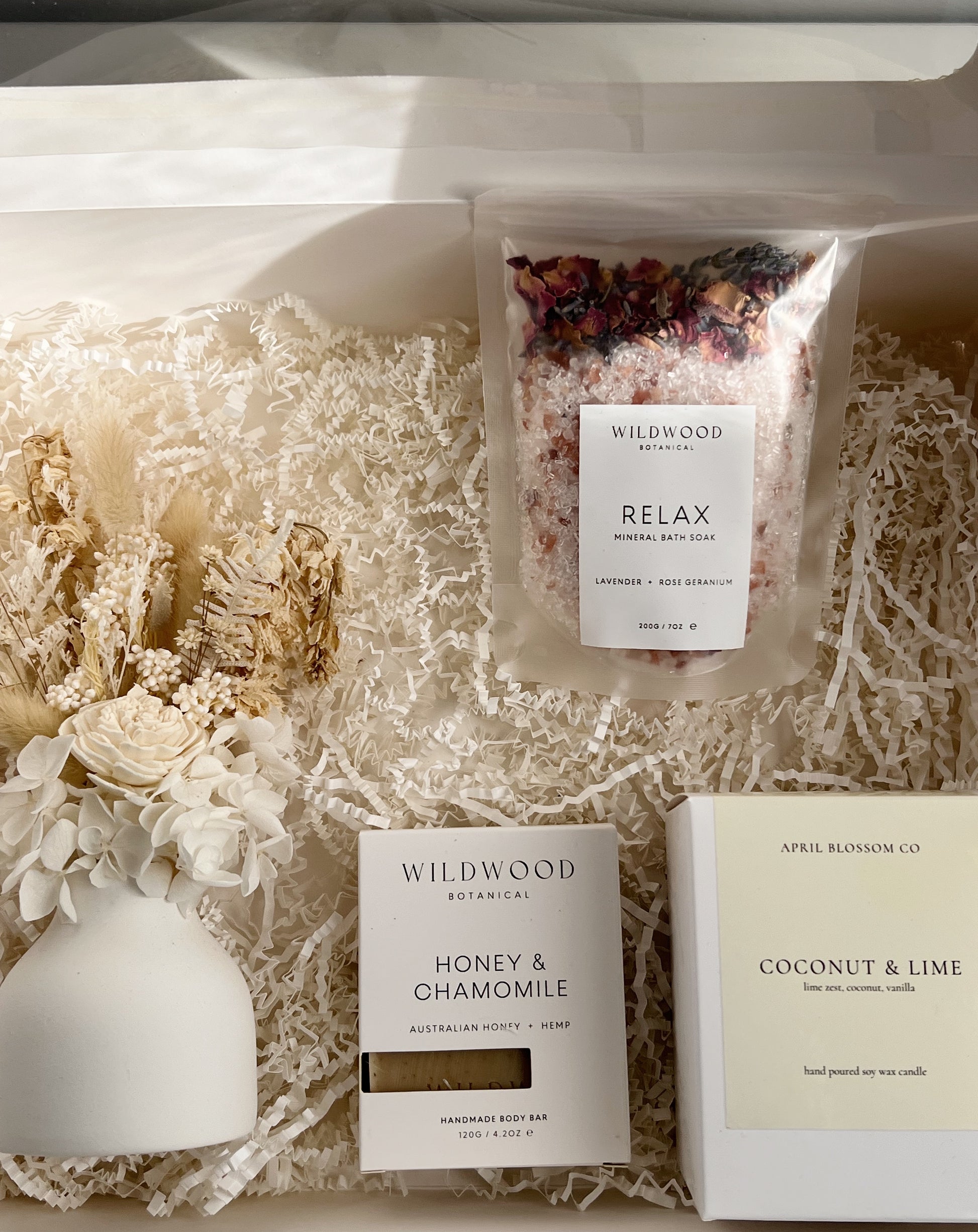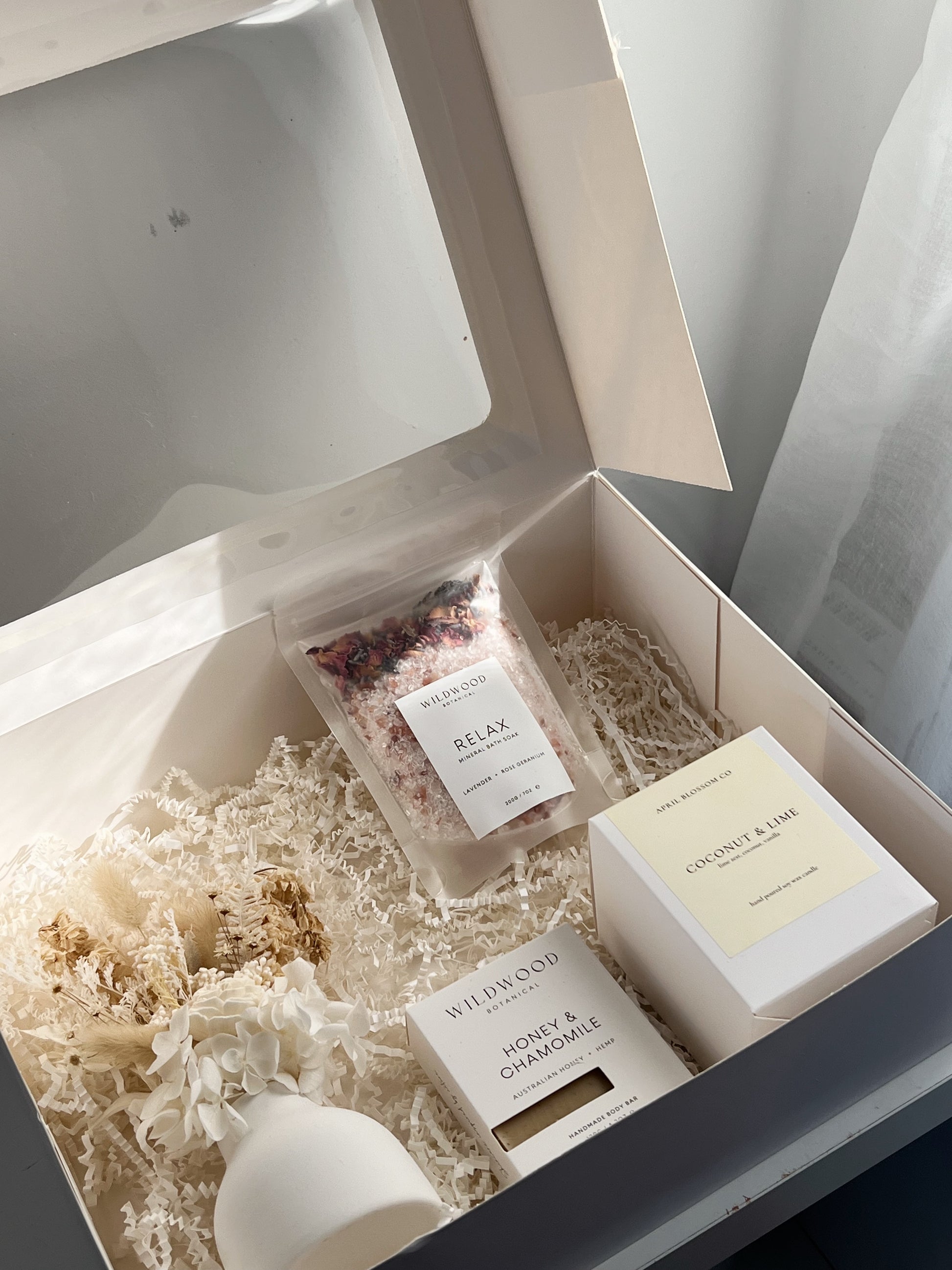 A gift box of pick me up products to brighten someone’s day, perfect for mum or a loved one.
