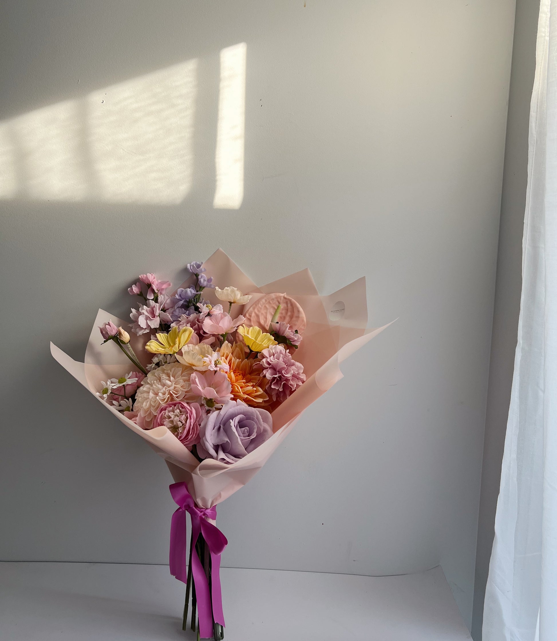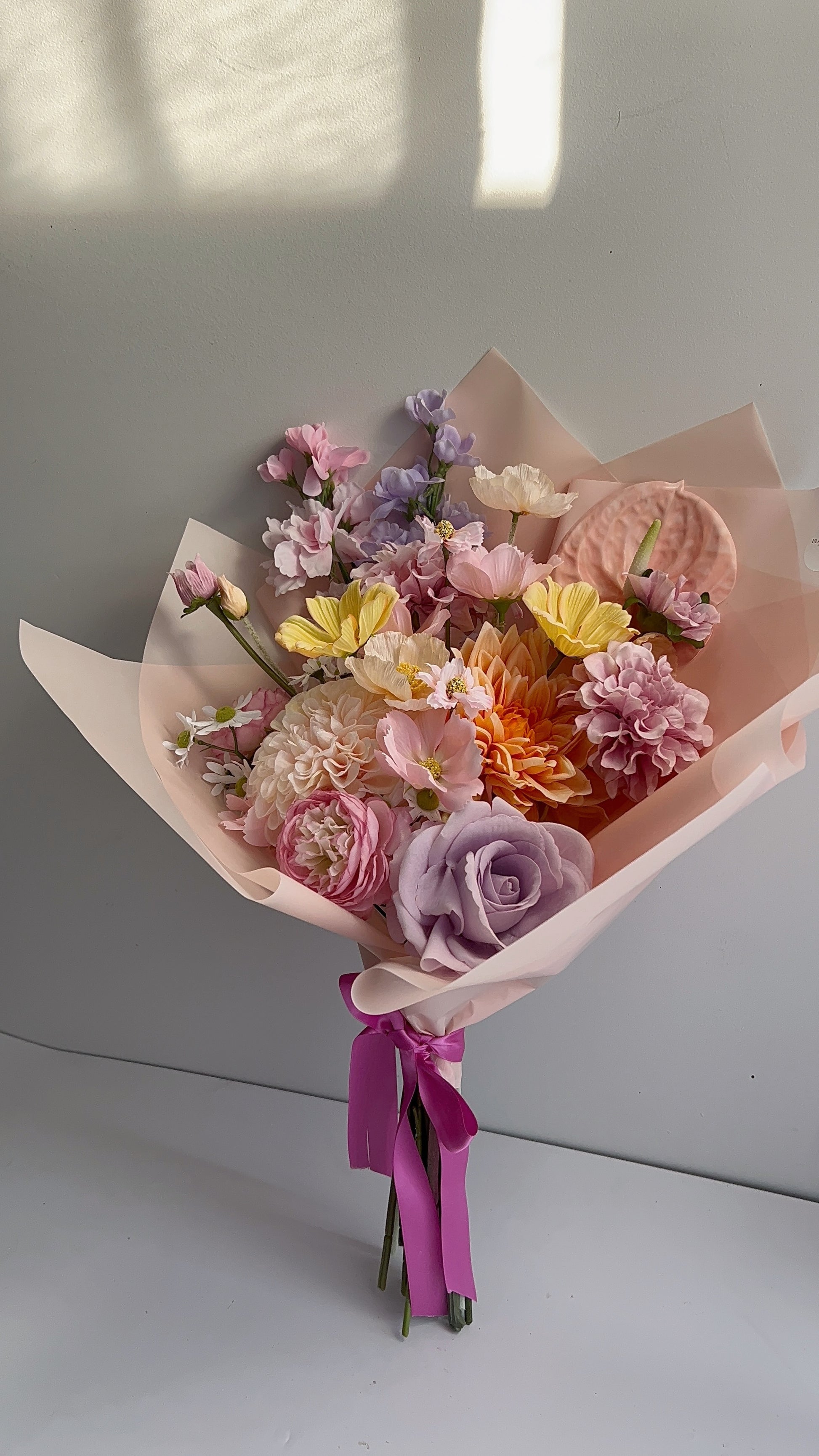 Flower Care: Artificial flowers will last for years if cared for properly, naturally over time colours can fade, we believe this adds extra beauty.If your arrangement gets dusty, try using a hair dryer on a cool, low setting mode. Please don’t store your flowers in direct sunlight as this can cause fading with colours over a long period of time. Following our guidelines will enhance their lifetime.
